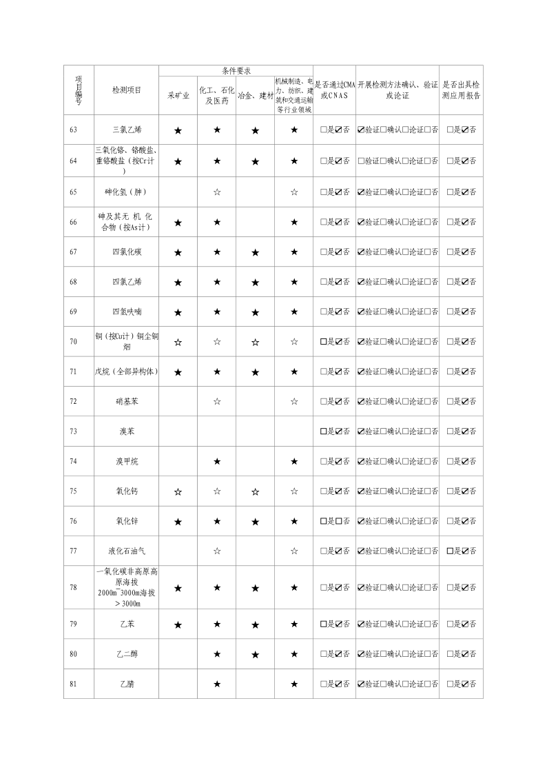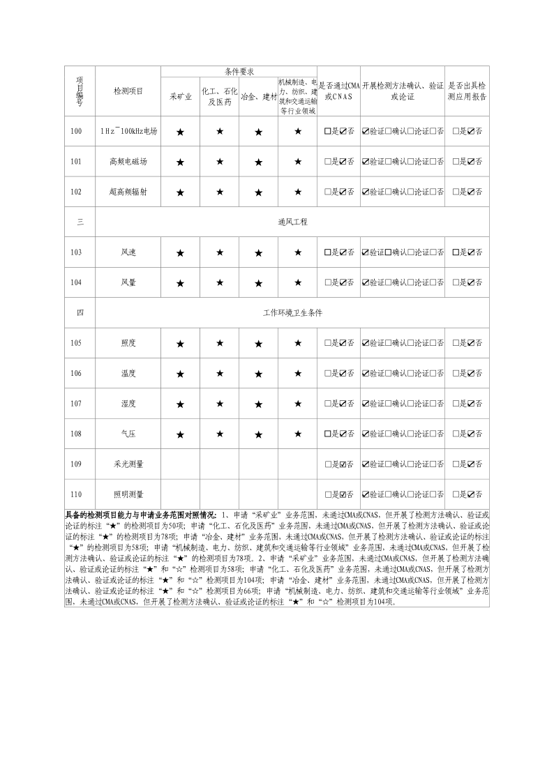 經(jīng)技術(shù)評審審核認定的檢測項目(第一類業(yè)務(wù) 合計110項)