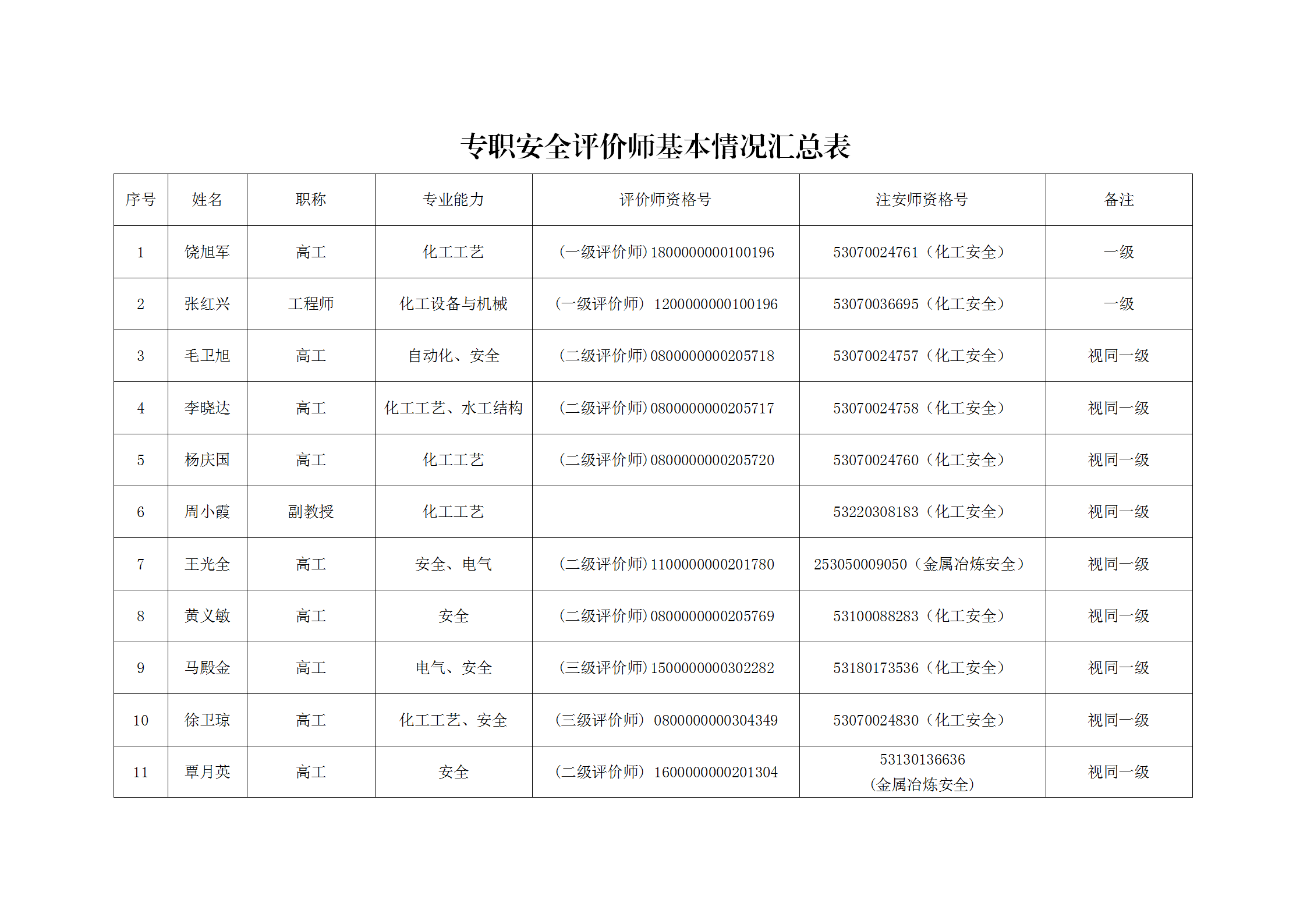 昭通市鼎安科技有限公司安全評價師一覽表